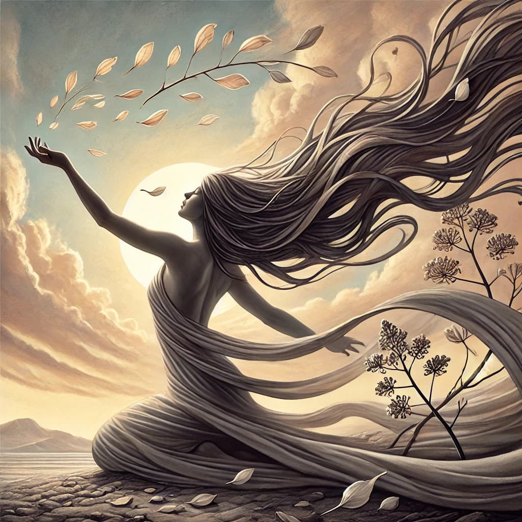 Ela surge como uma figura solene,