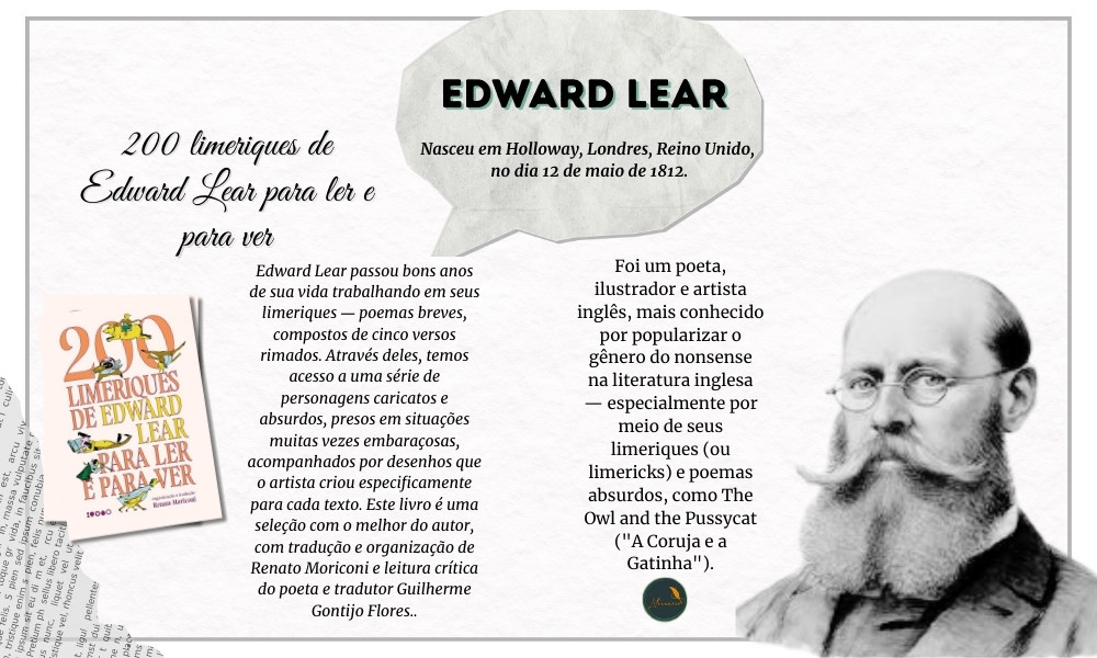 Foi um artista, ilustrador, músico e escritor inglês, mais conhecido por seus poemas nonsense e por popularizar a forma poética chamada limerique (limerick, em inglês). Ele teve uma vida curiosa e multifacetada, marcada por talento artístico, humor excêntrico e uma sensibilidade po