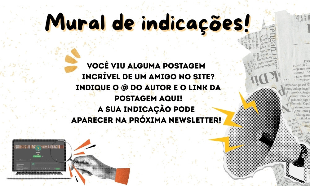 Indique aqui uma postagem de um colega do site! É só colocar o link da publicação nos comentários. A pessoa que receber mais indicações entrará na próxima newsletter.