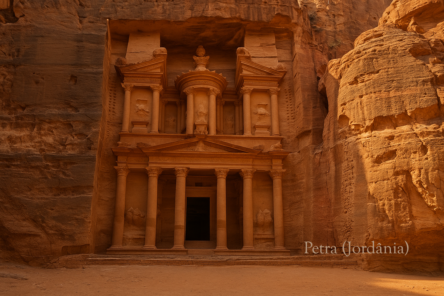 ________________________________________ ️ Maravilha Moderna – Petra (Jordânia) As luzes mudam de cor — tons rosados revelam paredes esculpidas diretamente na rocha. Exibe um sistema de canalização de água desafiador para sua época. Petra desfila, imponente como o deserto e silenciosa como segredos milenares. Capital dos nabateus, guardiã de rotas comerciais, seu olhar traz de volta os Jardins com admiração e serenidade: — Querido, você vive no imaginário. Eu… sobrevivo no silêncio das pedras. Os Jardins retrucam, brilhando como visão elegante: — E quem disse que existir é apenas ocupar um lugar físico? A cidade rosa baila diante do pano de fundo e canta: — Você representa o que o coração quer lembrar. Eu… o que o mundo tenta esquecer e não consegue. E por um instante raro, os dois se admiram. Com olhar babilônico, ele sussurra: — Sua cor é linda! Petra fica vermelha e sorri: — Confesso que seu perfume me atrai. Os mais enigmáticos. Os mais poéticos. As mais inesquecíveis. Os convidados assoviam, aplaudem e se desdobram tentando alcançar as celebridades que seduzem e brincam com as eras.