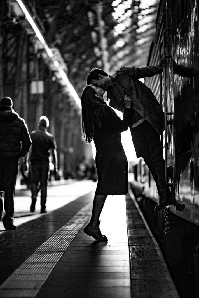 Com um beijo roubado.